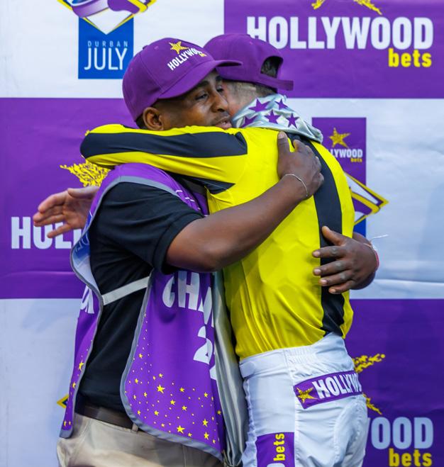 On the cover Joy of July! Candiese Lenferna snapped this shot of Hollywoodbets Durban July-winning jockey Craig Zackey embracing Dean Kannemeyer Racing team-member Simthembile Elvis Blayi, who looks after the champion, The Real Prince, on the winner’s podium