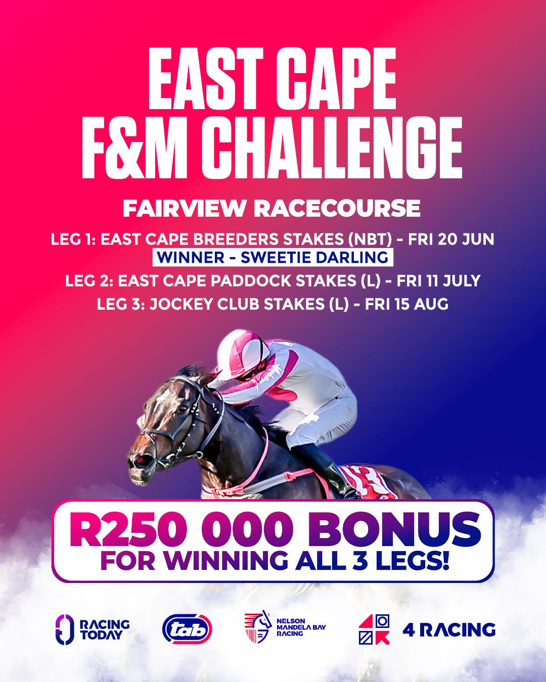Fellow Varsfontein-bred Double Grand Slam, already a Gr1 winner of the Cape Paddock Stakes, completed the day on a high note when she added the Gr1 Ridgemont Garden Province Stakes, with jockey Andrew Fortune saluting the crowd 50m from the winning post. Double Grand Slam is a daughter of Vercingetorix, who continues to forge ahead in the General Sires standings. While last year’s winner Oriental Charm was unable to give his sire a back-to-back July success, it proved to be another good day at the office for the Maine Chance standout, his progeny