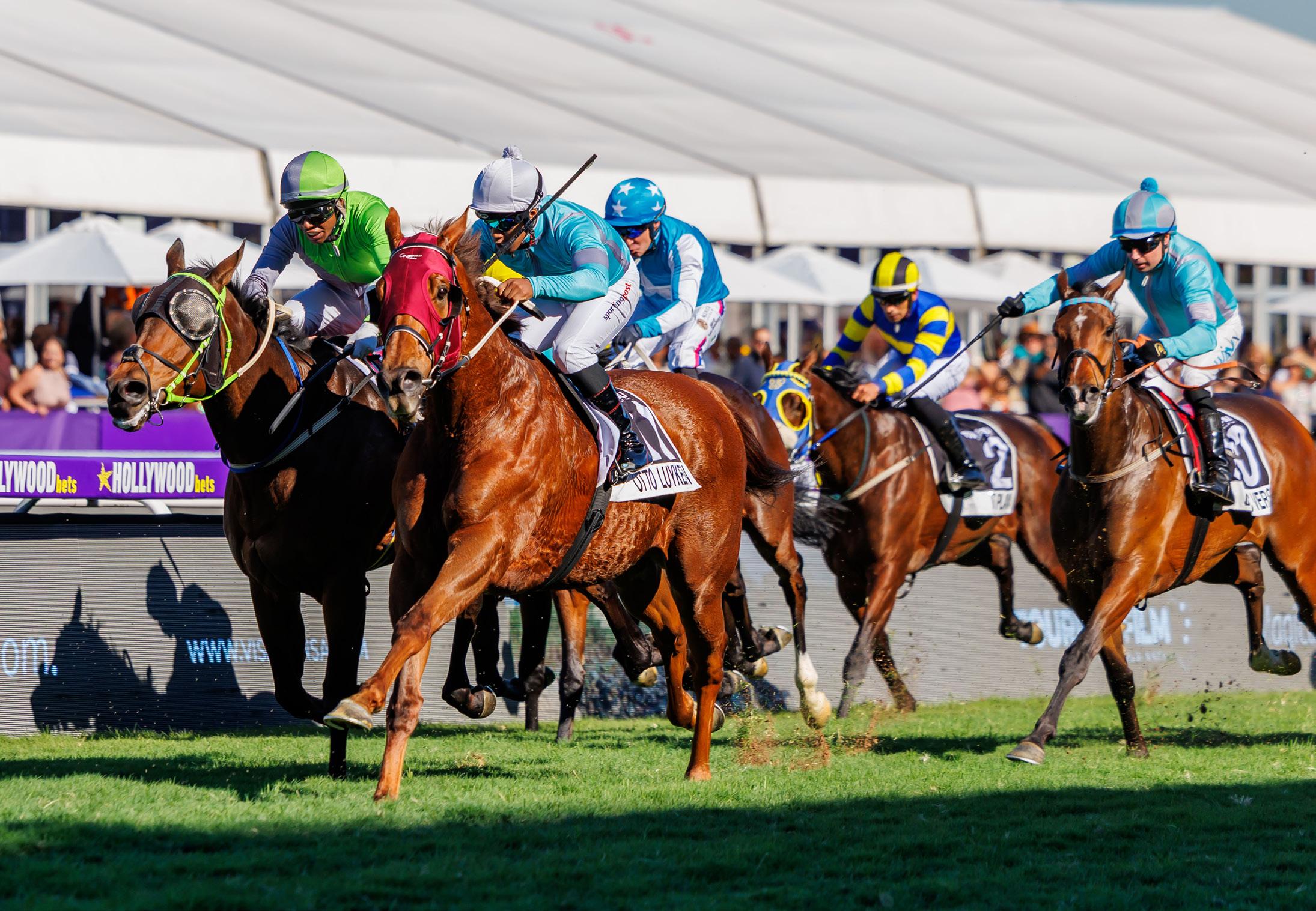 Greyville racecourse on South African racing’s biggest day of the year and the assembled masses warmed to the national anthem and their Marvels Of Mzanzi attire, and definitely weren’t disappointed as a high-class field of eighteen jumped from the 2200m marker amid a roar of approval.