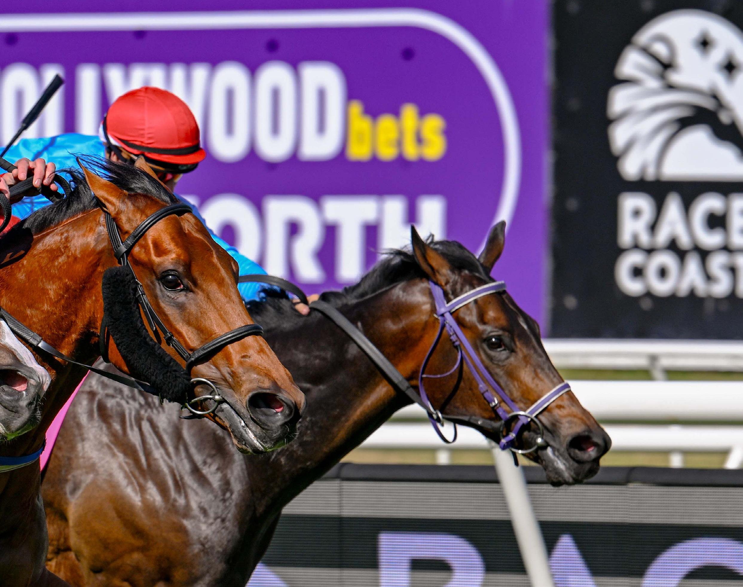 Ridden by Connor Beasley, the daughter of Rock Your World had to work hard to overcome leader Tjareed, but she won with a little in hand, by a length.
