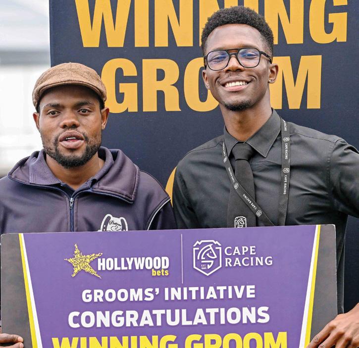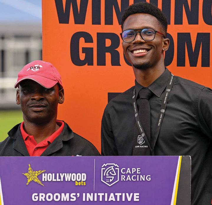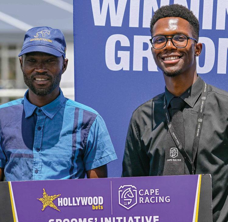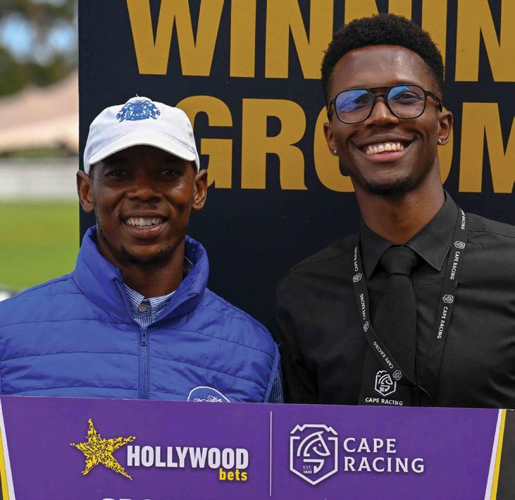 Durban View Room waiter-turned- apprentice jockey, Sifiso Bungane and his proud Mom Phateka smile for our photographer Candiese Lenferna after the 22 year old steered his first career winner home at Hollywoodbets Scottsville on Sunday 29 December 2024. Read his fairytale story on page 120 of this issue.