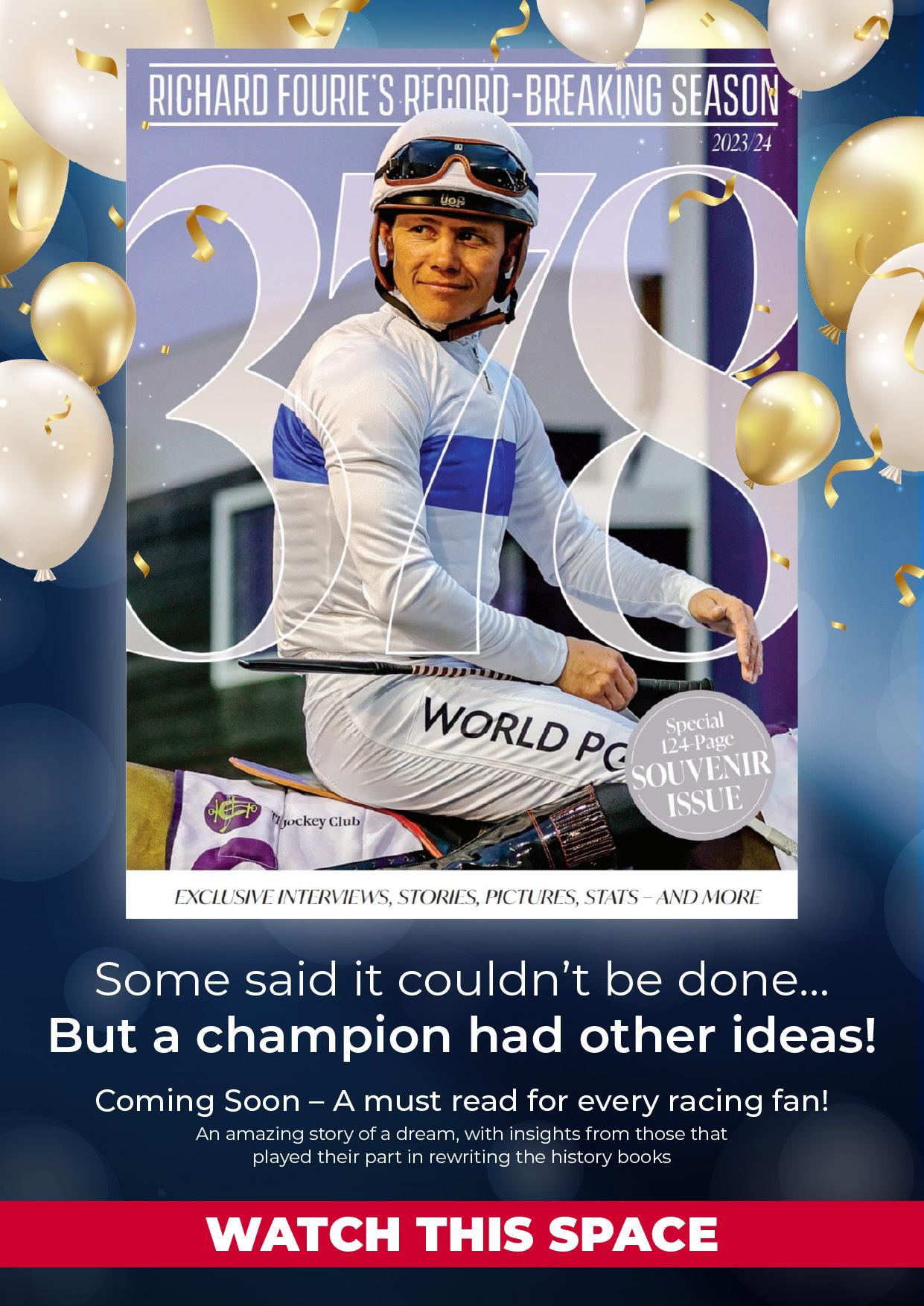 Richard Fourie became the second consecutive Winning Form-sponsored rider, after Hong King-based Keagan de Melo, to be crowned SA Champion Jockey, on 31 July 2024 , with a new benchmark of 378 winners on the board.