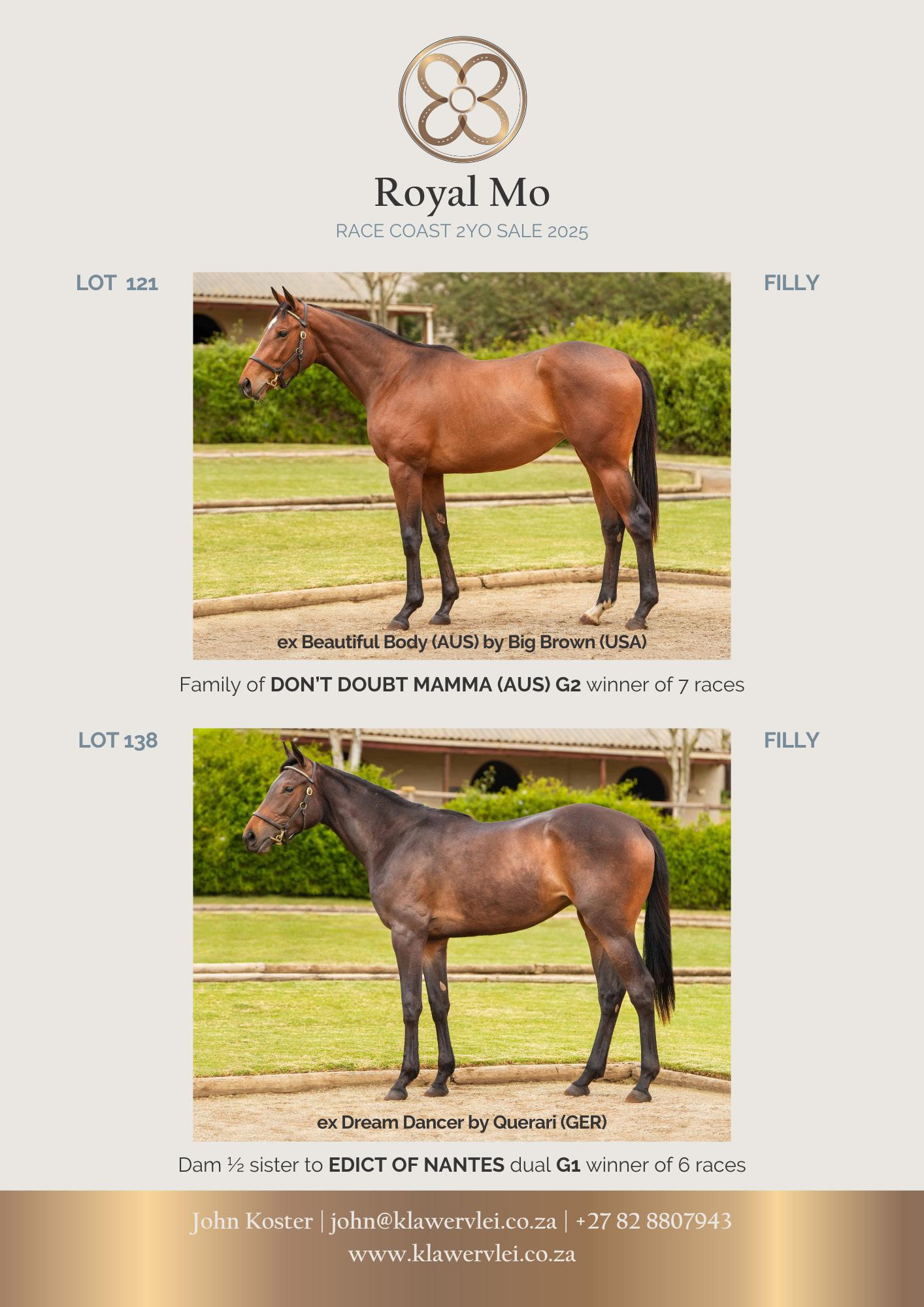 Klawervlei Stud, breeders of stars Vercingetorix, One World and Real Princess, will be offering a top-class draft at the upcoming Two-Year-Old Sale.