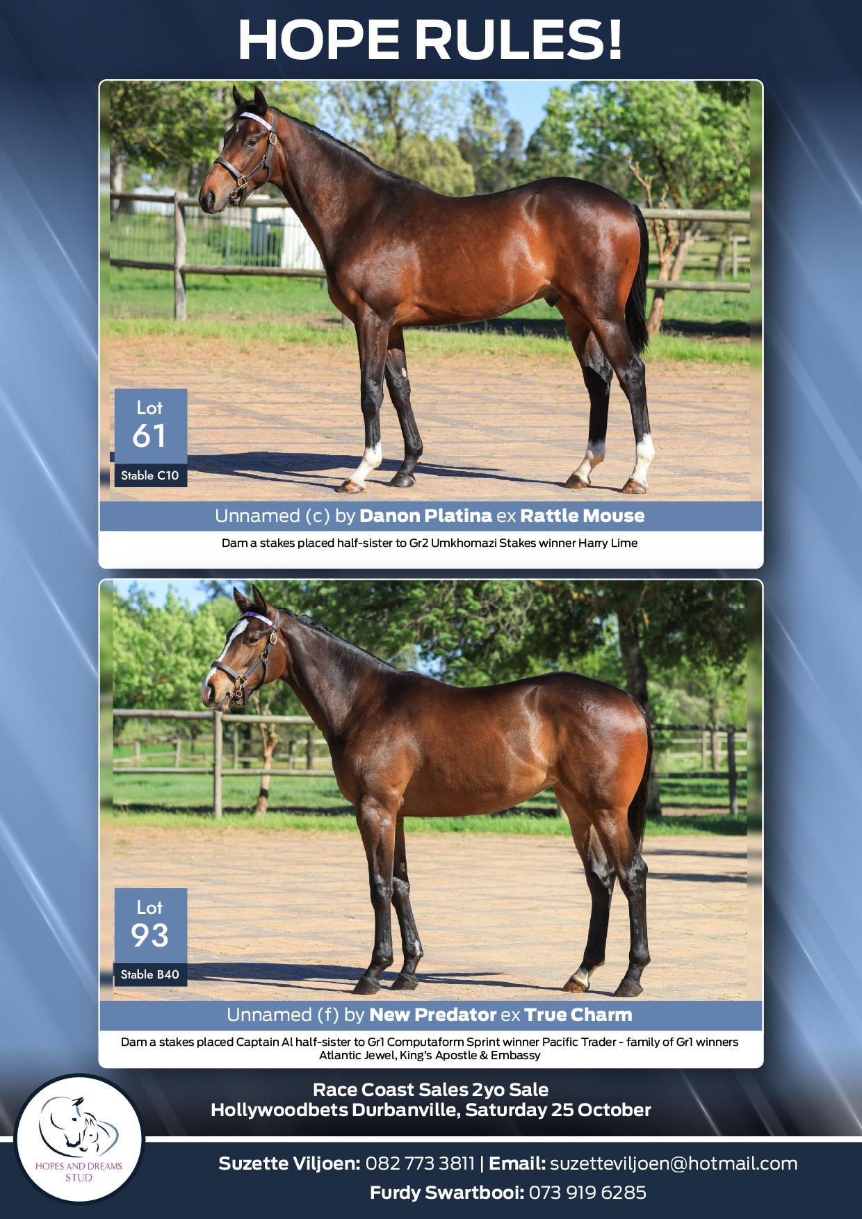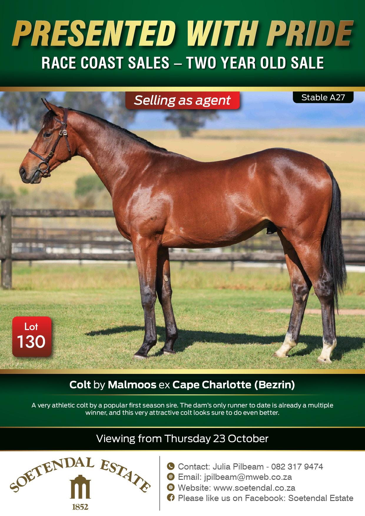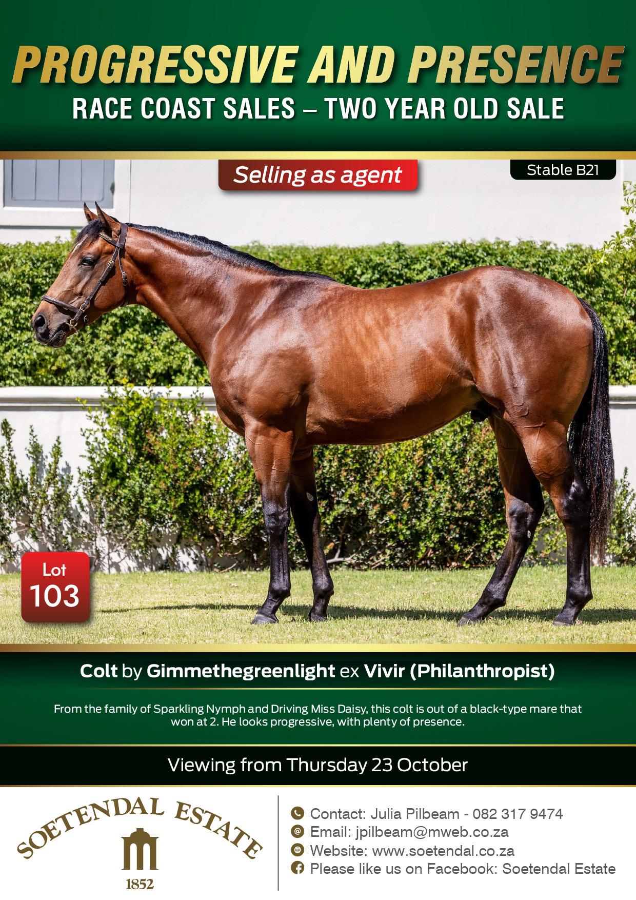 A few potential standout lots at the 25 October auction at Hollywoodbets Durbanville, includes: