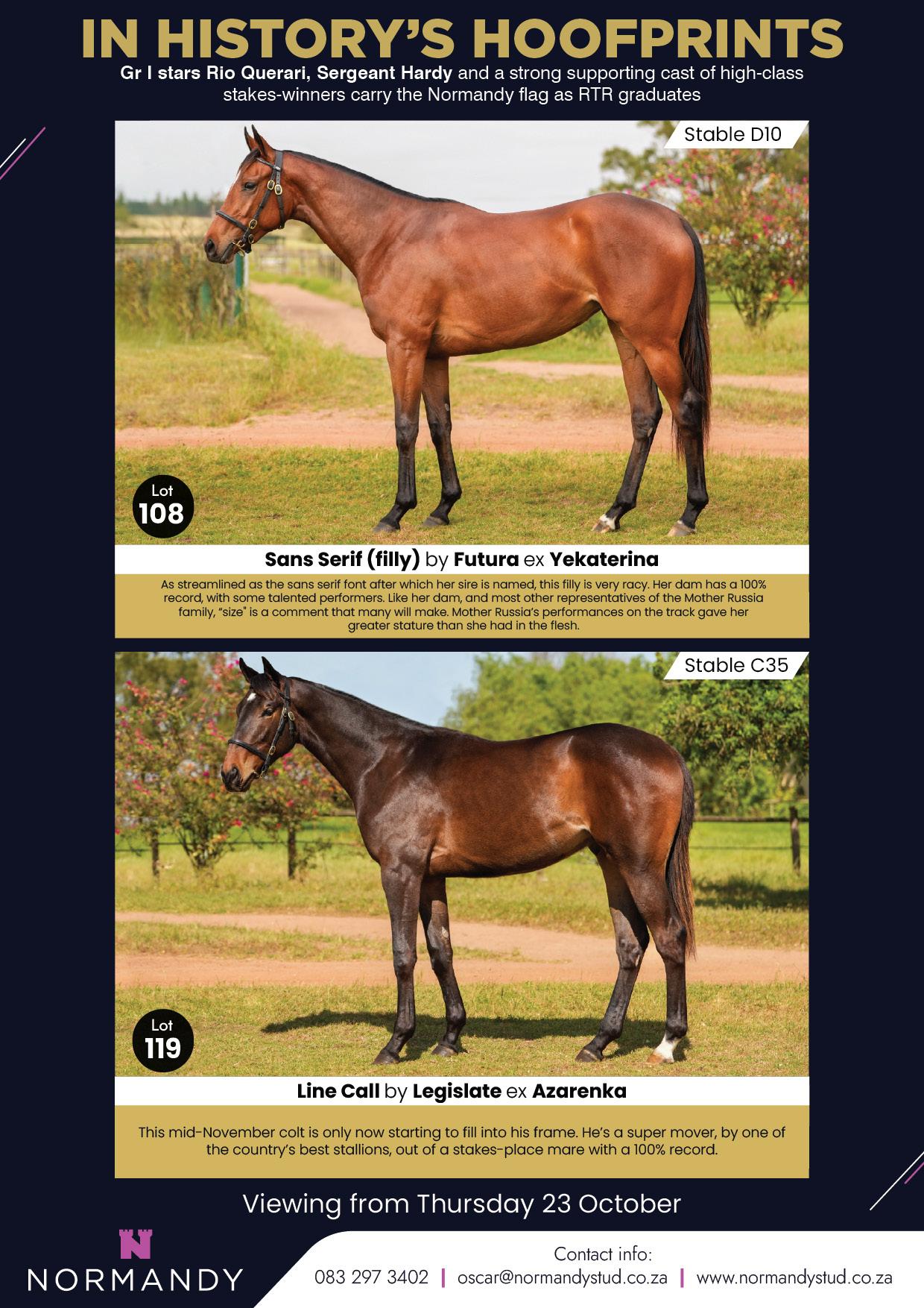 Ambiance will be offering an eight strong draft at the upcoming Two-YearOld Sale at Hollywoodbets Durbanville, and Marianne picked out the following lots of particular interest: