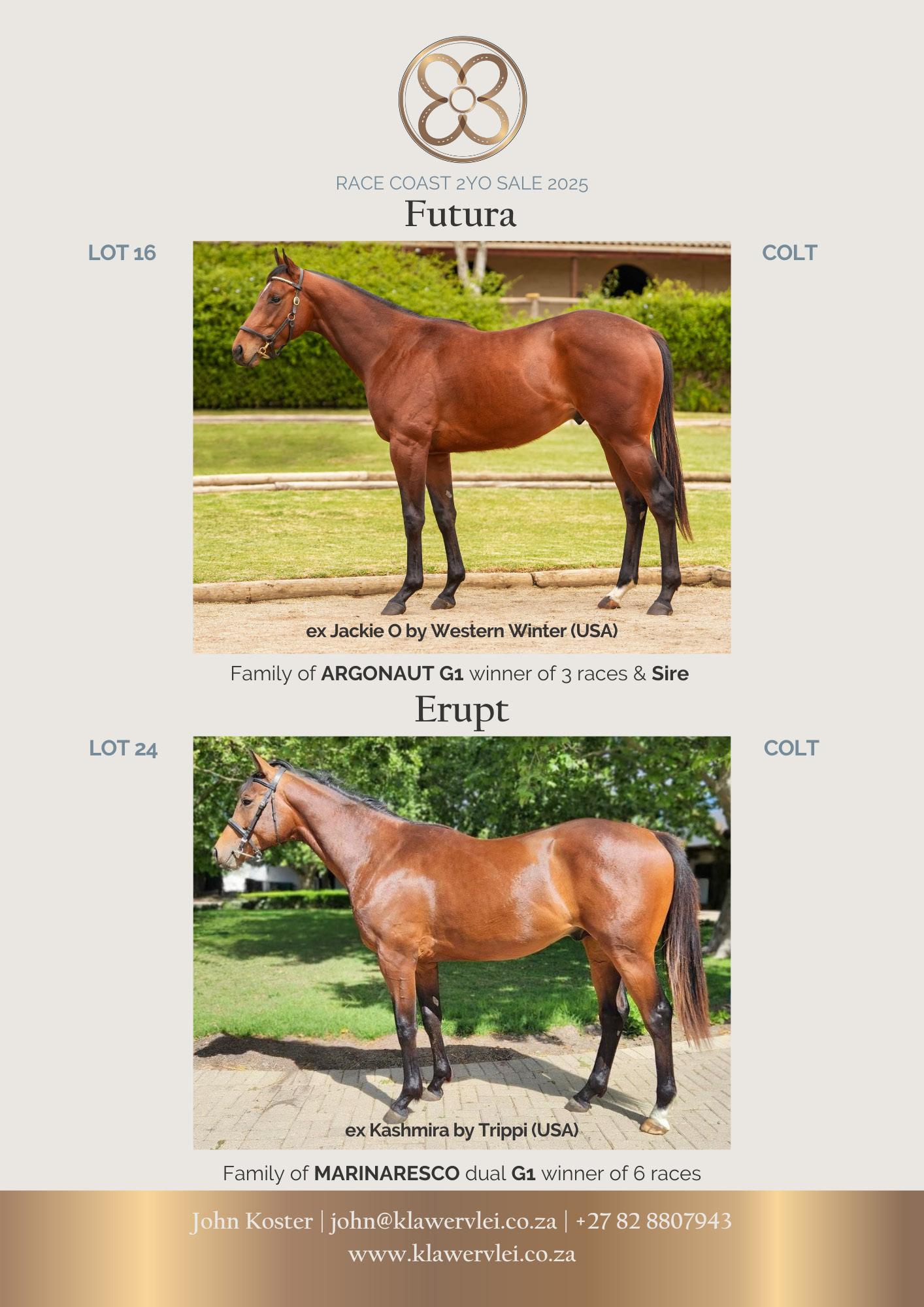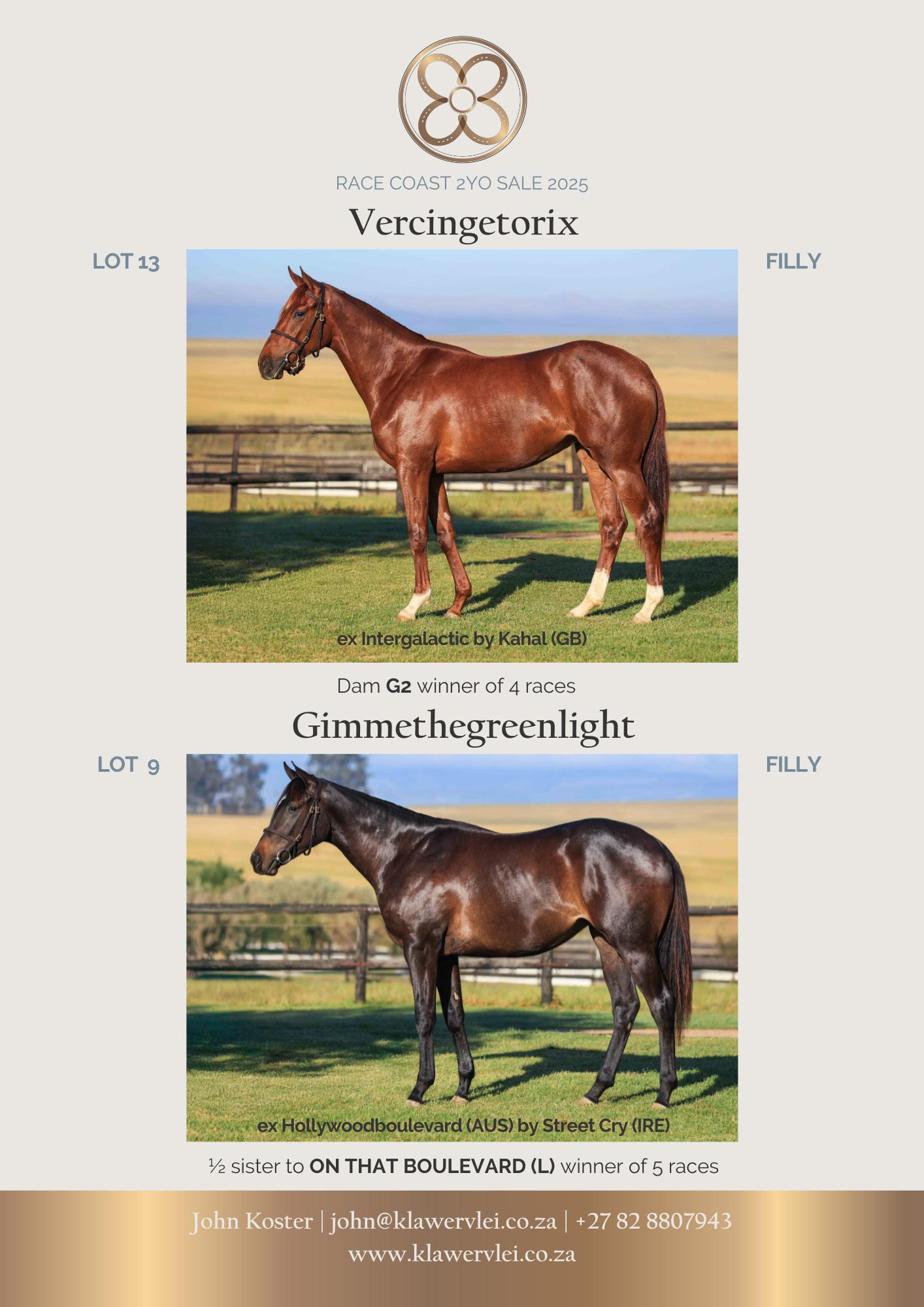 Their consignment includes progeny of South Africa’s reigning champion sire Vercingetorix, as well as two-year-olds sired by the likes of Gimmethegreenlight, Malmoos, and Querari.