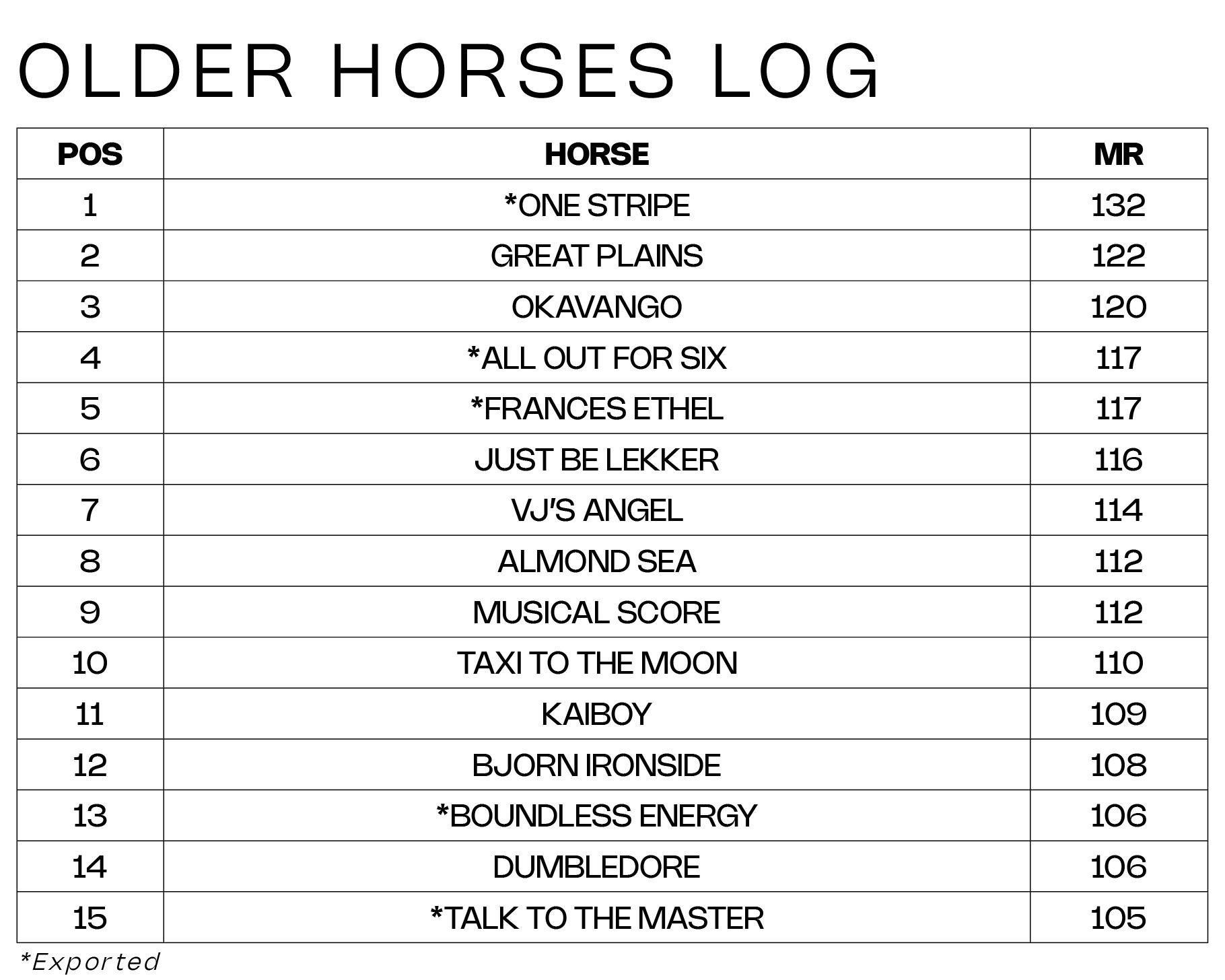 Meanwhile, Almond Sea, Just Be Lekker and Little Ballerina represent the leading older female talent, with VJ’s Angel not far behind.