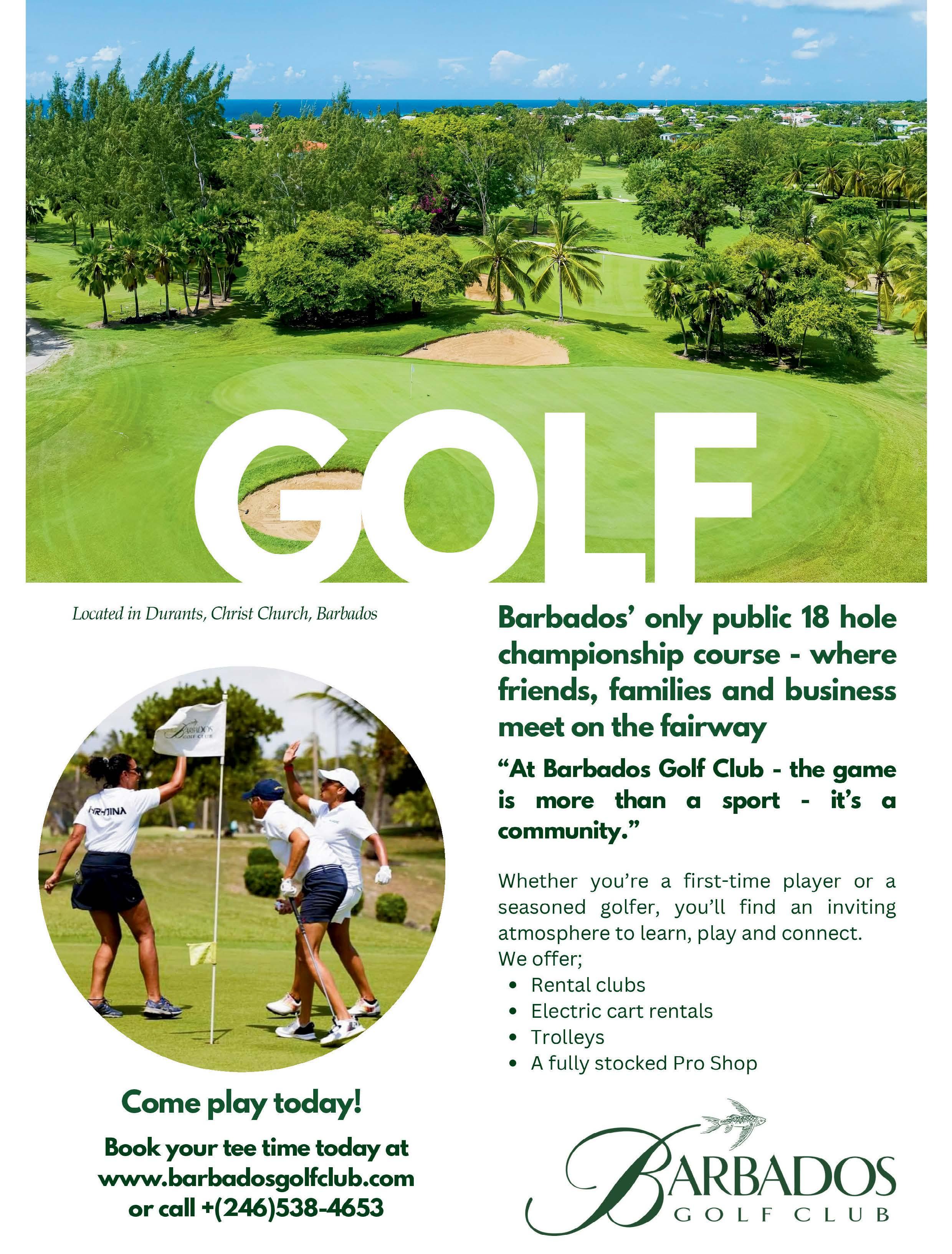 The ‘brand’ Sporting Barbados has grown and changed just like the world around us. We are an award winning quality print magazine that depicts this island in a totally unique light – drawing people to the island for something other than sun, sea and sand. Showcasing the marvelous sporting events and opportunities available on a place only 166 square miles. Now we are a force online with a strong website www. sportingbarbados.com and popular social media platforms. You want to find out what’s happening with major sports events on the island, you look at our media. We post every day and the team spends hours researching to bring you the most up-to-date information. In this edition we celebrate 100 years of Rockley Golf Club. This little nine hole course sits like an oasis on the South Coast of the island and although certainly not the most difficult course on the island, it presents a challenge and has the best 19th Hole! Congrats to Rockley and we look forward to seeing it grow and prosper. We also are happy to highlight football, rugby, cricket, motor sport, polo, horseracing, equestrian, sailing, diving, squash, golf, ocean swimming and more. There is something for everyone in Sporting Barbados! Not to mention a plethora of other activities and restaurants to compliment the perfect holiday! So much is happening on this