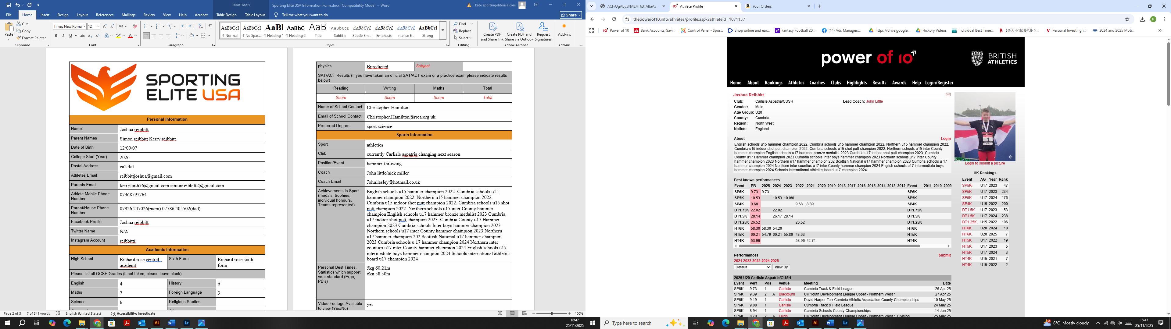 “Hammer thrower Josh Reibbitt has proven himself to be a remarkable student athlete. With a history of commitment to both his studies and athletic pursuits, he will be a valuable contributor to a college“