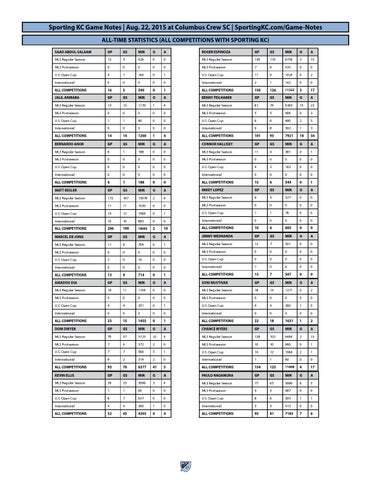 Sporting KC Game Notes | Aug. 22, 2015 at Columbus Crew SC | SportingKC.com/Game-Notes ALL-TIME STATISTICS (ALL COMPETITIONS WITH SPORTING KC) SAAD ABDUL-SALAAM