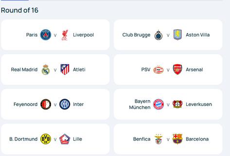 Los octavos de final de la UEFA Champions League inician este martes 04 y 05 de marzo, y los partidos de vuelta los días 11 y 12 de marzo