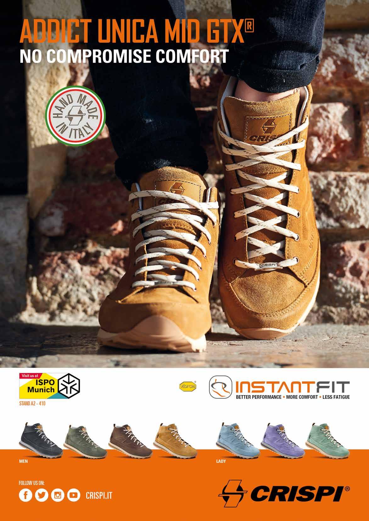 Dolomite si presenta a Ispo con una linea celebrativa per i 120 anni dell’azienda, plasmata da imprese che hanno lasciato il segno nella storia dell’alpinismo. Nel 1954, ad esempio, una spedizione italiana equipaggiata con calzature Dolomite conquista per la prima volta la cima del Karakorum K2. Seguirono molte altre avventure: la spedizione in Groenlandia nel 1966, la conquista del Dhaulagiri e l’ascesa del Fitz Roy in Patagonia nel 1976. Ai successi sportivi si accompagnarono importanti riconoscimenti internazionali nel mondo del design come il Compasso d’Oro (1957 e 1967) e il Design Award della Repubblica Federale Tedesca (2011). Prodotti iconici che hanno segnato un’epoca, non solo nel mondo della calzatura tecnica per la montagna ma anche nello sportswear e nel casual: un esempio per tutti, il mitico “Artic”, il piumino proposto in tantissimi colori che ha vestito la generazione degli Anni ’80. Ed è proprio da quel momento che Dolomite si apre al lifestyle, senza mai abbandonare la sua identità di brand sportivo che si ispira alla magnificenza delle Dolomiti.