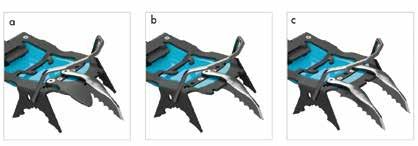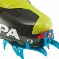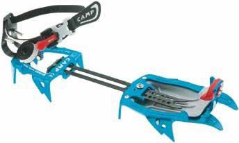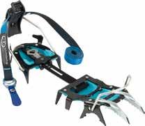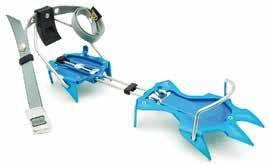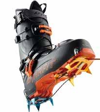 Lo scarpone è compatibile con i ramponi semiautomatici, ma è particolarmente adatto all’utilizzo con il nuovo rampone ultraleggero Cramp-In, creato in collaborazione con Salewa (vedi foto a fianco). Con un peso di appena 260 grammi è tra i ramponi più leggeri sul mercato, e grazie a uno speciale meccanismo con ganci e un apposito inserto sulla suola viene fissato direttamente sullo scarpone senza fastidiose fettucce. La suola in gomma Pomoca Climbing, grazie alla speciale mescola mantiene costanti le prestazioni di grip e tenuta dello scarpone. Naturalmente Hoji Pro Tour è dotato dell’innovativo inserto Masterstep Light di Dynafit, che facilita l’entrata nell‘attacco Low Tech.