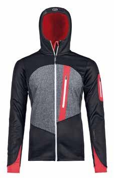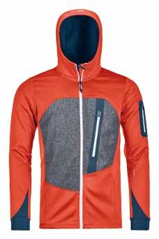 Bamboo Light, un tessuto softshell elasticizzato traspirante, quick dry e confortevole al tatto, e che in combinazione con i soffietti assicura una ampia libertà di movimento mentre si arrampica. La Ortles Hybrid TWC Jacket occupa inoltre un volume ridotto nello zaino con soli 402g di peso aggiuntivo, e non ingombra sotto il guscio.