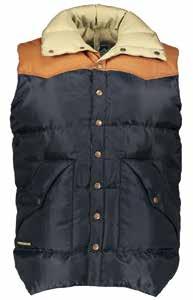 The collection is focused on the Original Leather Vest, a dark blue nylon vest with leather shoulders. It’s from here that the story of Powder Horn began, which was then expressed in a much more articulate Down Jacket line, including the Teton Field Jacket in the “beloved” Golden Brown coloring.