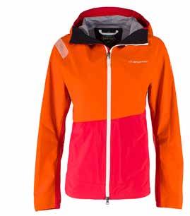 La reingegnerizzazione della giacca ne ha aumentato la resistenza ai frequenti contatti con le rocce, alle lamine degli sci e allo zaino, utilizzando un tessuto ripstop in nylon a doppia tessitura in combinazione con inserti sotto le braccia in Durastretch