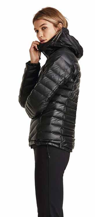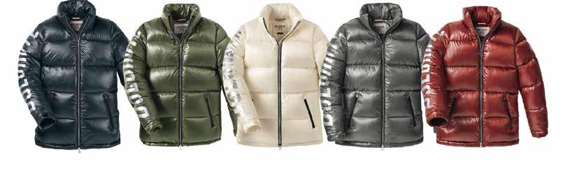 Cinquantaquattro Special jackets were inspired by the Dolomite’s legendary jacket of the Eighties, but now with a new, looser fi t. The range comprises six colour choices, all with the strong, colour-block contrasts typical of the 1980s, from yellow teamed with blue, to red with pearl-grey, midnight blue with ivory, plus the more sober shades of military green and navy blue. A big, contrasting Dolomite logo on the sleeve is the distinguishing feature of the whole range and a declaration of identity. The genuine goose feather padding ensures comfort and heat insulation. Like the men’s range, the Cinquantaquattro Special line for women draws on the oversized fi ts of the ‘80s. With all the characteristics of the men’s collection, it is distinguished by a range of plain colours and by a sparkling silver big logo on the sleeve.