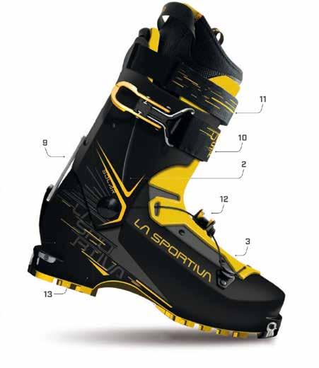Il sofisticato sistema di chiusura Hoji Lock permette infatti di non sprecare tempo e fatica, mantenendo le mani al caldo dei guanti, per la regolazione e il passaggio tra modalità ski e walk, un vantaggio soprattutto nei tour in cui si applicano e rimuovono spesso le pelli. La leva posteriore può essere raggiunta anche con i pantaloni da sci chiusi, ed è costruita in modo da poter essere attivata facendo leva con l’altro scarpone.