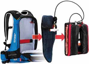 Zaino molto leggero con fissaggio degli sci in diagonale. Il caricamento frontale garantisce facilità d’uso, la tasca interna dispone di uno scomparto per pala e sonda antivalanga. Sono presenti inoltre cinghia ventrale leggera con tasche in mesh elastico, tasche laterali reticolate porta-pelli, tasche in mesh elastico, istruzioni sul comportamento in caso di emergenza in ambiente alpino (riportate nello scomparto principale), schienale imbottito, elementi rifrangenti, foro per idratatore Aquarius.