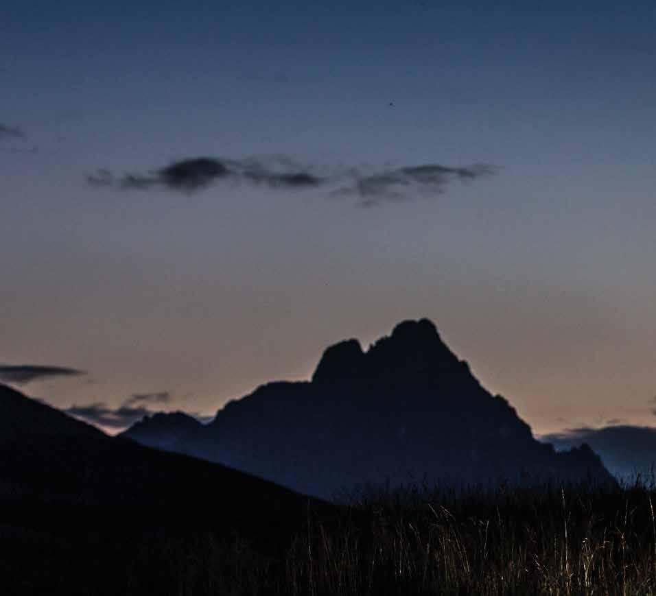 INSIDIE NASCOSTE - Alcune tracce, forse di scialpinisti o ciaspolatori, confluite nella stessa direzione, creano un sentiero zigzagante dove dietro l’apparente compattezza d’appoggio, a ogni passo, si nascondono vere e proprie insidie. Innocui trabocchetti da saper vedere e prevedere o perlomeno da saper ovviare; improvvisi cedimenti del manto nevoso semi compresso che creano torsioni sbilenche alle caviglie; situazioni di stabilità precaria dove ogni singolo microscopico muscolo è allertato. Ogni appoggio, spinta e falcata sono diverse fra di loro, l’unica costante è il fittone che sbuffa nella trasparenza dell’aria fredda. Destrezza e propriocettività si aggiungono a un lavoro di forza e resistenza.