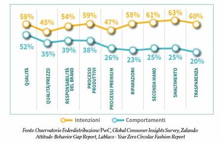 Fonte: Bilanci di sostenibilità pubblicati online, Global Consumer Insights Survey, Fashion Revolution – Fashion Transparency Index