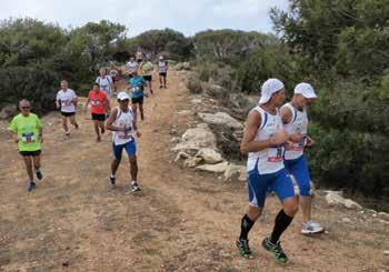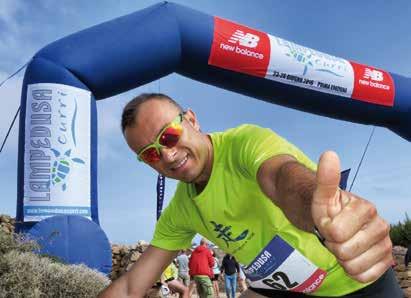 nel pacco gara, dopo il via, diventa inevitabilmente una lunga fila di bipedi colorati e agitati che si inseguono fino all’arrivo. Una fila che il primo giorno serpeggia tra stradine incastonate tra muretti a secco che le separano dall’arido assoluto di una terra giallastra, riarsa e pietrosa. Un anello che parte e arriva dall’unico faro dell’isola per una tappa che si corre quasi al tramonto.