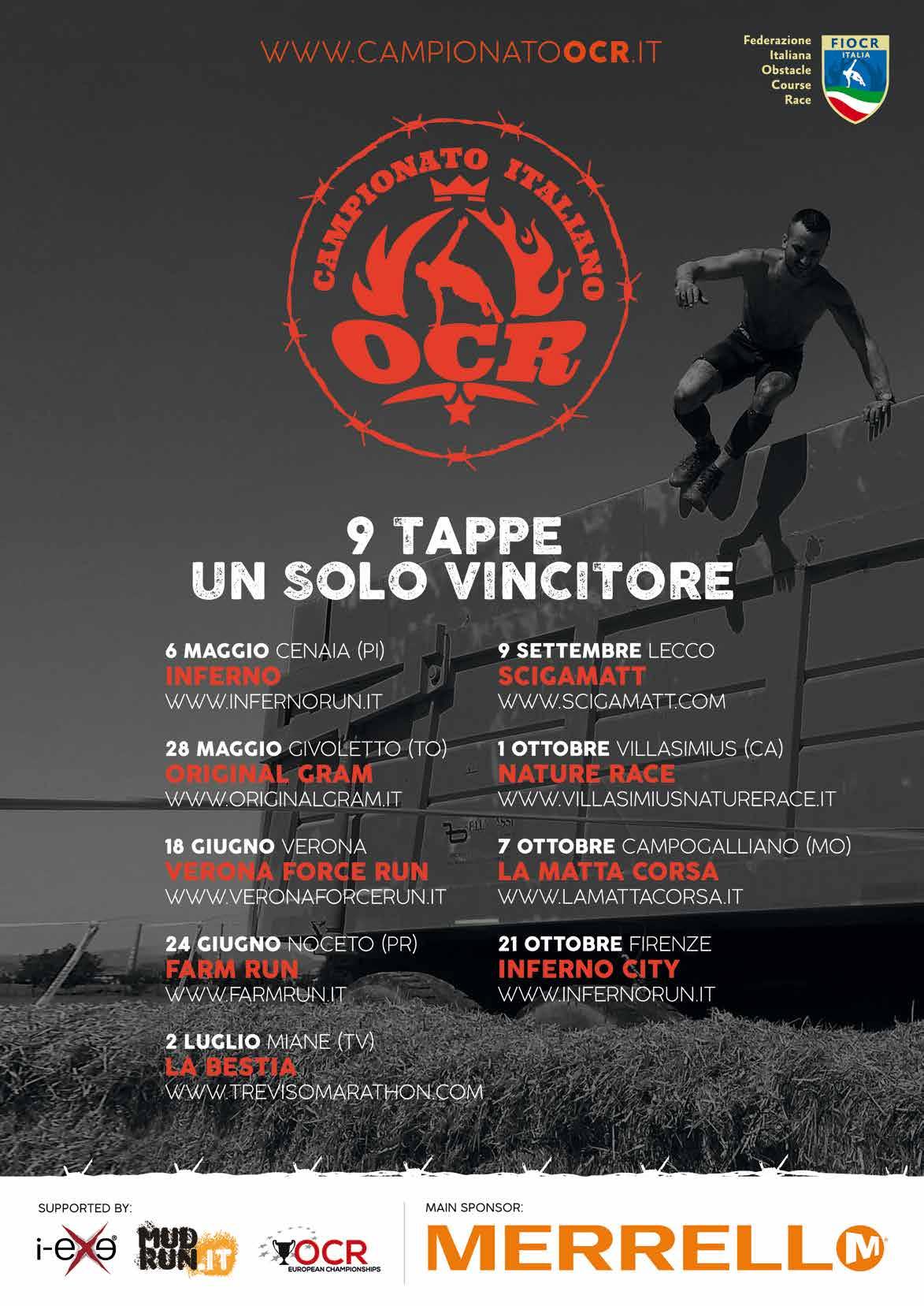 Forte del successo del 2016 e della sua candidatura fra le migliori OCR Europee sul sito mudrunguide.com, Inferno Run torna anche quet’anno. Due gli appuntamenti: il 6 maggio in provincia di Pisa, nella bellissima tenuta di Torre a Cenaia, e il 21 ottobre all’Ippodromo del Visarno, nel cuore del Parco delle Cascine di Firenze. Tra le novità i nuovi kilometraggi. Per gli atleti competitivi che gareggeranno nella tappa di Cenaia prevista per il 6 maggio, saranno 13 i km in cui affrontare ostacoli di ogni tipo in aperta campagna. Previsto anche un percorso per i non competitivi, anch’esso ricco di insidie, che però misurerà 5 km. A Firenze i km saranno 9 ma con un’altra novità: oltre alla corsa diurna gli organizzatori stanno verificando la possibilità che si possa organizzare una corsa di 3km in notturna. Ancora una volta la Inferno di Cenaia e di Firenze saranno rispettivamente la prima e l’ultima tappa del Campionato Italiano di OCR e ancora una volta la Inferno sarà una delle gare valide per la qualificazione agli Europei e ai Mondiali di OCR. www.infernorun.it