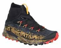 aderente permette di affrontare al meglio superfici scivolose e di mantenere il grip su terreni cedevoli o ghiacciati grazie ai tasselli pronunciati e alla compatibilità con chiodi amovibili. La ghetta idrorepellente protegge dall’entrata di sassi e fango e il sistema di allacciatura integrato rapido e intuitivo con tasca porta laccio a scomparsa velocizza le operazioni di calzata.