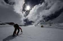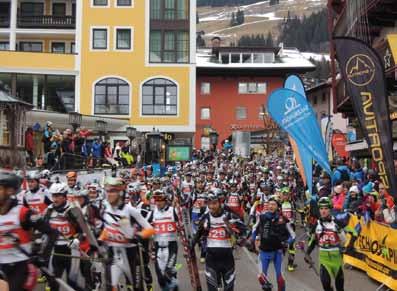 UNA gArA di STrATegiA - Caratteristica di questa gara è quella di svolgersi interamente su piste battute, quelle del magnifico comprensorio di Saalbach – Hintergramm. Non per questo si tratta di una corsa facile. Anzi, a parere degli esperti può risultare una gara ben più impegnativa di gare scialpinistiche in fuoripista. Lo si capisce subito arrivati a Saalbach guardando la pista dove la corsa inizia: il famoso Schattberg. Questa “montagnozza” che svetta 1.000 mt sopra il paese viene risalita dagli atleti in soli 4 km di pista. Una gara dove tattica e strategia risultano fondamentali. Non a caso, a sole poche ore dalla partenza ancora molti atleti si confrontavano sul sistema migliore con cui affrontare i tratti più ripidi, detti eloquentemente “muri”. Si tratta infatti di una pista nera su cui facilmente in alcuni tratti si possono creare delle placche di neve durissima, quasi ghiacciata che, in assenza di una buona pelle con un ottimo grip, possono creare grosse difficoltà. Normalmente infatti in molte gare si prediligono pelli dall’elevata scorrevolezza a scapito magari di una maggior presa sulla neve. Lo Schattberg invece, soprattutto