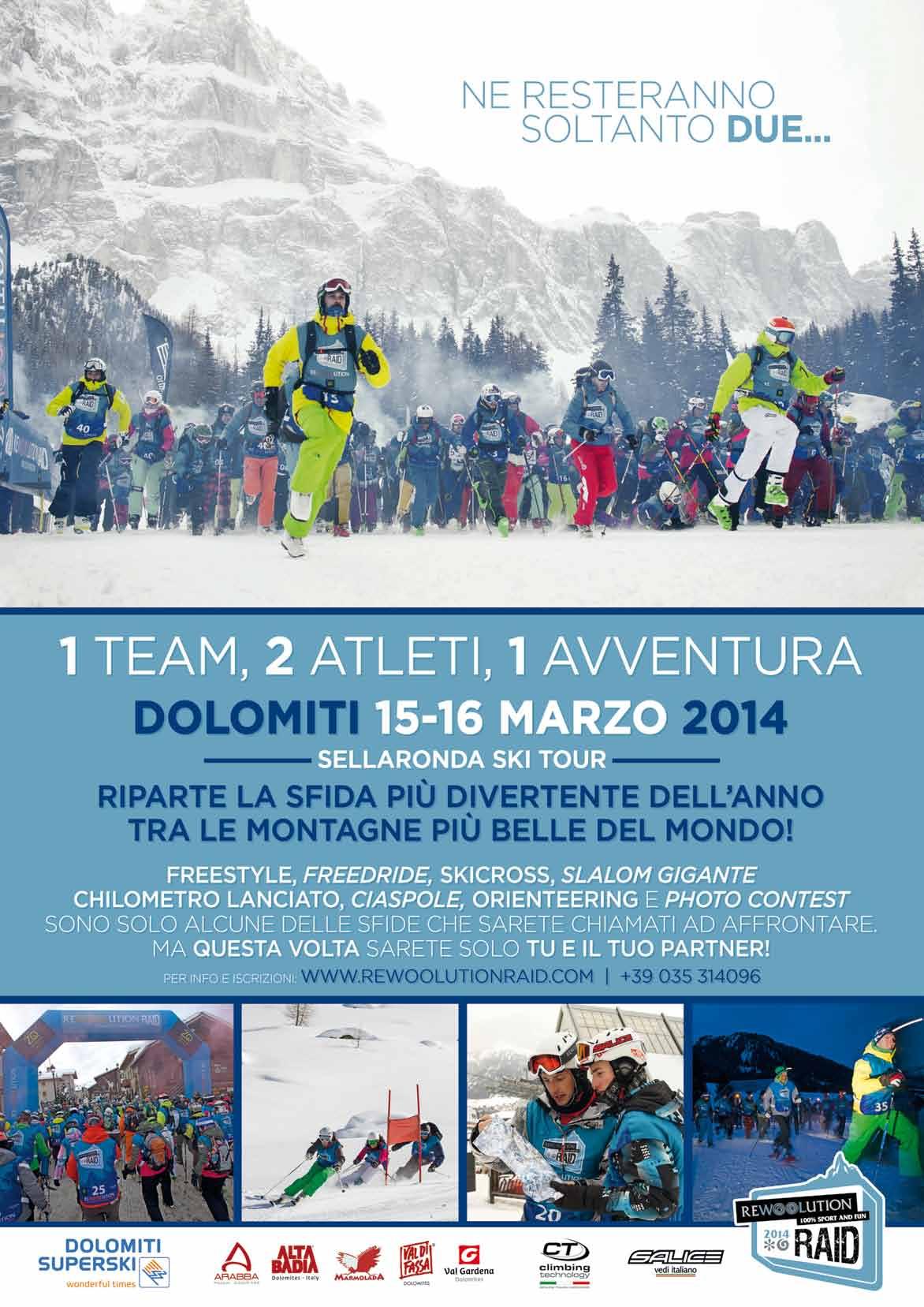 Torna l’attesa Adventure Race dei Rewoolution Raid Winter, a calendario il 15 e il 16 marzo. Per il terzo anno consecutivo il raid dedicato a tutti gli appassionati di sci, snowboard e telemark trova il proprio palcoscenico al Sellaronda. Quattro passi, quattro valli, tre province toccate e centinaia di km di piste sono solo alcuni dei numeri che rendono unica questa location. I partecipanti, come ogni anno, dovranno cercare di totalizzare quanti più punti possibile per scalare la classifica e conquistare il podio. Grande novità dell’edizione 2014 è la partecipazione all’evento con team di 2 e non più 3 atleti. Le squadre affronteranno in orienteering diverse prove speciali, raggiungeranno i check point, si aggiudicheranno punti nel photo contest e molto altro ancora. Ricordiamo che i Rewoolution Raid sono aperti a tutti, professionisti e amatori. Tra le chicche nel pacco gara i ramponi da trail running CT (foto a destra). Per partecipare gratuitamente con un team del vostro negozio contattate la nostra redazione: redazione@outdoormag.it