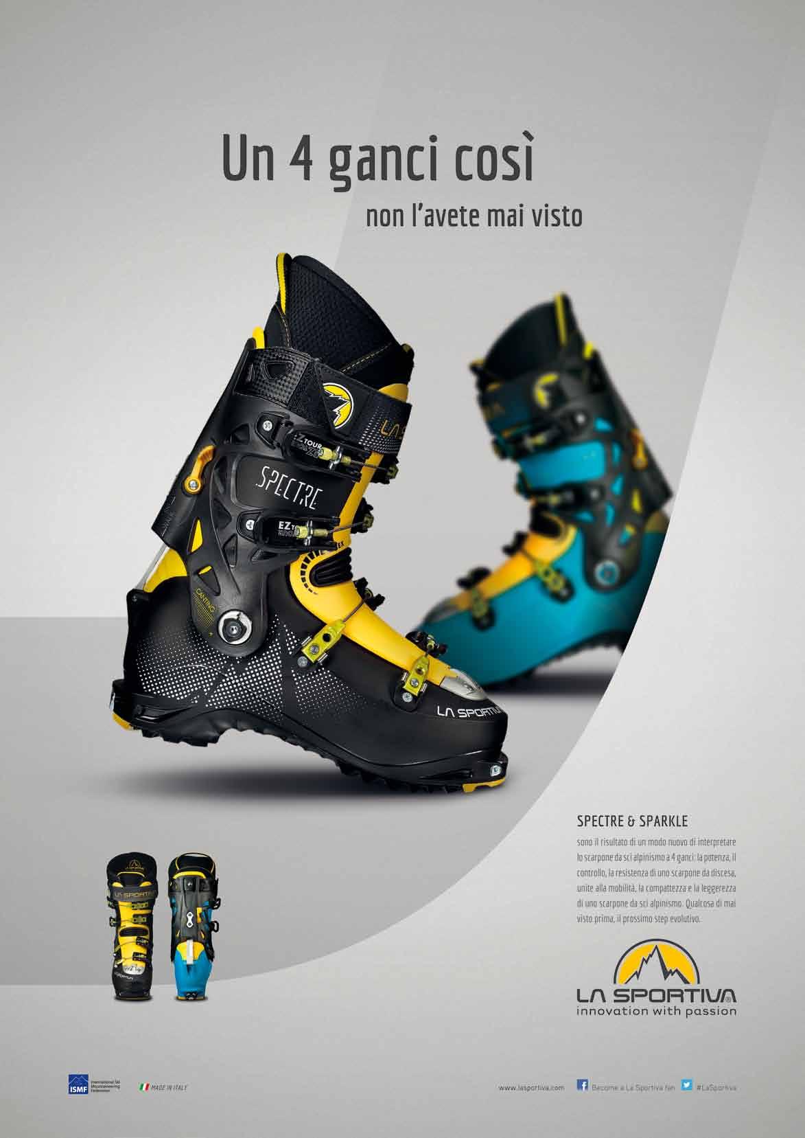 Prima della gara l’azienda ha riunito i negozianti e i giornalisti presenti per illustrare le novità inserite nella prossima collezione. Luca Mich (marketing) ha poi illustrato le attività di questa stagione: “Abbiamo investito molto non solo sul prodotto ma anche sul marketing per spingere questo movimento, questo mondo. Siamo stati sin dalla nostra entrata nel mondo dello sci alpinismo un brand molto tecnico e molto impegnato nel mondo delle gare. Abbiamo iniziato con lo Stratos, e poi col Cube. Con il nuovo Cyborg (foto sotto, ndr) vogliamo continuare a investire in questa specialità, attraverso il La Sportiva Team. Cerchiamo anche di raccontare storie dietro alle prestazioni sportive, e questo è quello che abbiamo voluto fare realizzando un cortometraggio sul nostro campione William Bon Bardion. Tutti lo conoscono come un grande atleta ma in realtà è anche un grande lavoratore. Svolge infatti l’attività di casaro e per questo motivo riteniamo che rappresenti molto bene lo spirito e la dedizione al lavoro che il nostro brand incarna. Questo video in Italia e Austria è stato usato per promuovere il marchio. Abbiamo molti membri del nostro team che aiutano l’azienda a portare in giro i suoi prodotti organizzando molti test day e sono impegnati nel seguire gli atleti nelle varie competizioni. Allo stesso modo la creazione del team di atleti La Sportiva The Mountain Attack team rappresenta l’attenzione del marchio per i paesi di lingua tedesca. La Sportiva inoltre è recentemente diventata membro di Bluesign e per l’abbigliamento quest’anno presenterà una intera linea di intimo marchiata col suo marchio di sostenibilità. L’obiettivo è dunque non solo fare i migliori prodotti ma anche farlo rispettando l’ambiente”.