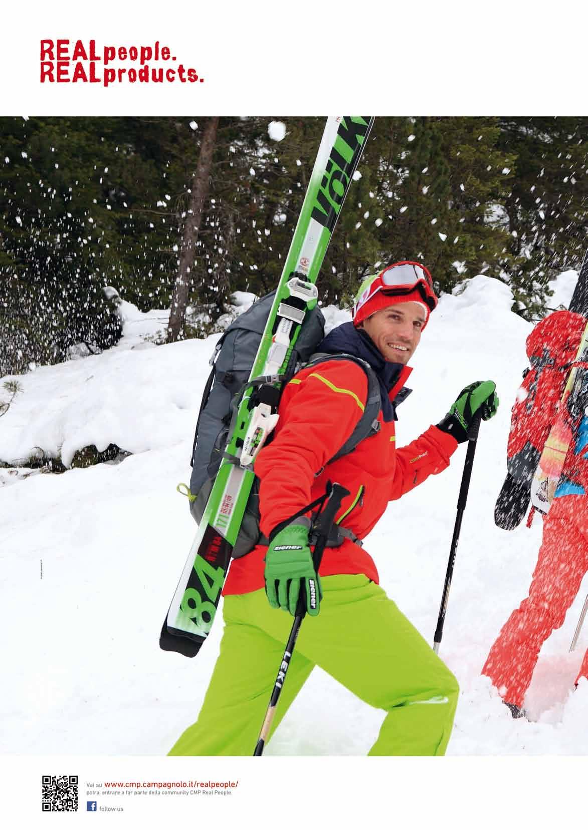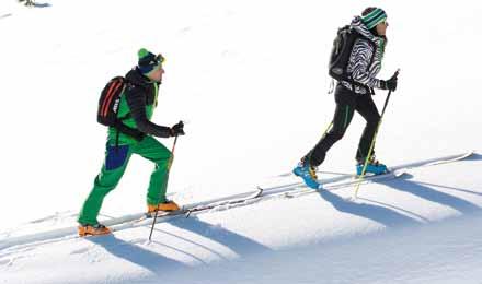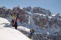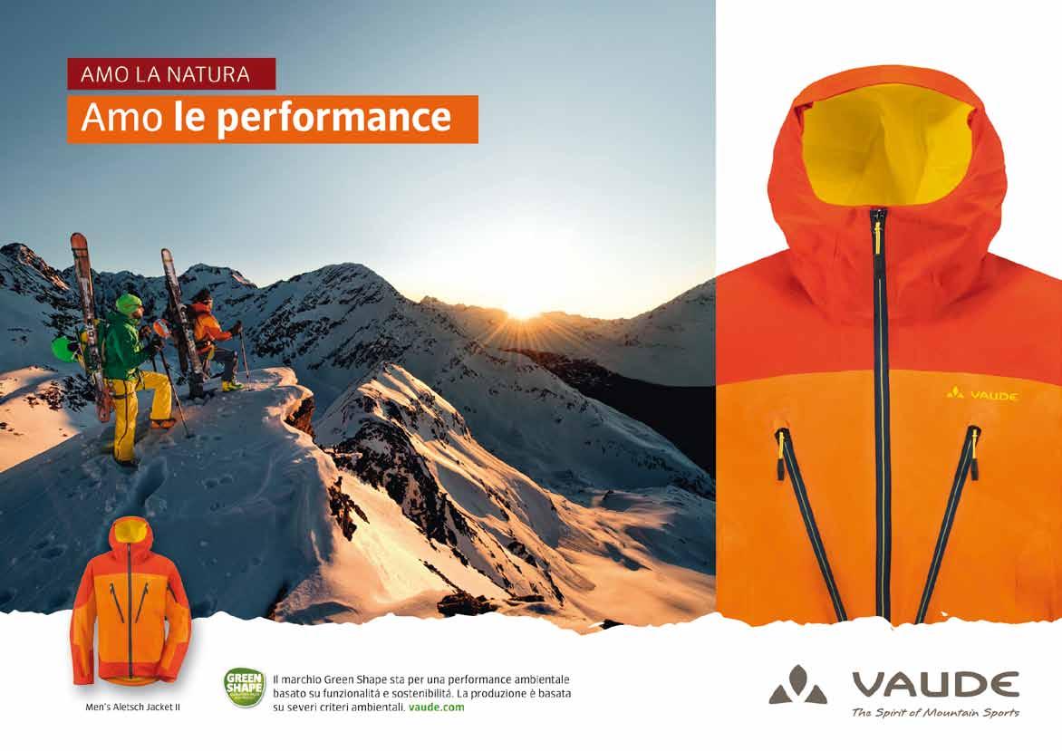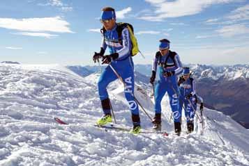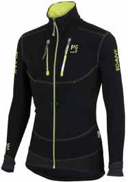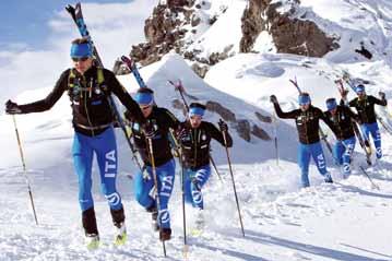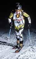 lA diviSA kArpoS Peron, race performan ce director, sia per il ciclismo che per lo scialpinismo. Segue le esigenze degli atleti. “Abbiamo cercato di lavorare molto non solo sull’abbiglia mento di gara ma anche su quello per l’allenamento, gli atleti partecipano molto pro-attivamente allo sviluppo dei prodotti”. Karpos è in grado di offrire ogni capo di cui hanno bisogno gli atleti, non solo in gara ma anche per gli allenamenti. “In alcune gare oltre una certa quota, come la Grand Course, dopo che ci sono stati dei problemi per il freddo, sono stati resi obbligatori dei capi imbottiti, così li abbiamo creati, anche se ancora non sono disponibili nei negozi”. Oltre alla tuta da gara, Karpos ha sviluppato un completo coordinato pantalone e giacca, Alagna, per un uso performance. Completa il tutto un leggero antivento e sovrapantalone per proteggere dall’aria.
