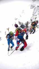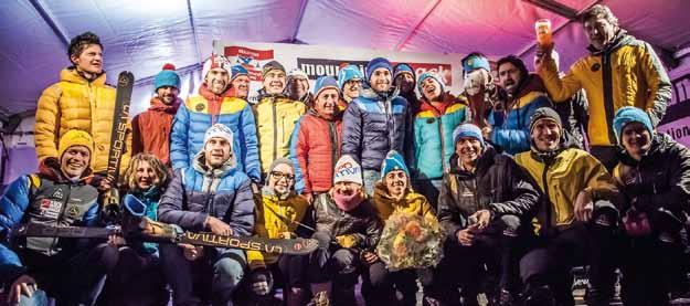 sul suo secondo muro, più che velocità richiede un ottimo grip. Al punto da far propendere molti atleti per la scelta di utilizzare dei rampanti durante la salita o addirittura di salire a piedi sci in spalla. Marco Facchinelli, atleta La Sportiva, in cima al termine del suo vertical ci dirà un poco amareggiato di aver adottato proprio questa tecnica ma di essersi reso conto che chi saliva al suo fianco con i rampanti aveva qualcosa in più.