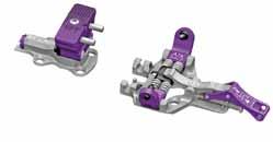 Questo è il primo attacco da gara studiato e dedicato al mondo femminile. Consente uno step-in estremamente morbido e rapido grazie a una geometria di aggancio appositamente disegnato. Inoltre la sua leggerezza (117 gr) garantisce migliori performance. È realizzato in leghe aeronautiche ultra leggere ed è caratterizzato da sistema di bloccaggio semi automatico, sportellino talloniera regolabile in rotazione e supporto per rampant.