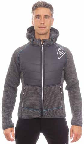 Giacca termica ibrida dotata di elevato potere termico e di grande comfort, è ideale per i periodo invernali più freddi. Foderata completamente in pile furry, all'esterno presenta due diverse composizioni: una parte superiore in Nylon Ripstop resistente, idrorepellente e antivento con uno scopo protettivo e una parte inferiore in pile 100% poliestere con effetto wool look rigato, finissaggio resistente alle abrazioni, estremamente elastico e confortevole. Il capo ha un'ottima vestibilità, il giusto compromesso tra protezione e libertà di movimento. La parte dei fianchi e delle braccia risulta molto traspirante anche se il tessuto in parte respinge l'aria. Pure l'interno del cappuccio è foderato in pile furry caldissimo e confortevole, dotato di elastico regolabile per adattarne meglio la chiusura al viso. Due ampie tasche scaldamani davanti richiudibili con zip e collo alto, proteggono meglio dalle basse temperature.