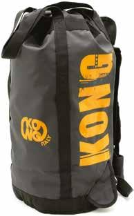 Sacca per trasporto di corde e attrezzatura realizzata in PVC estremamente resistente, dotata di comodi spallacci imbottiti occultabili e ampio fascione lombare rimovibile, di anelli per la sospensione baricentrica di lunghezza differenziata e di una ampia apertura superiore che garantisce un accesso confortevole al suo contenuto.