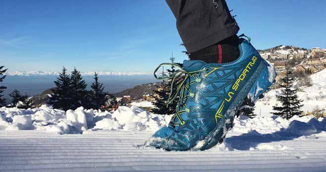 La suola dev’essere tassellata come quelle da trail per avere una buona presa su tutti i tipi di neve, che sono tanti e differenti fra di loro.