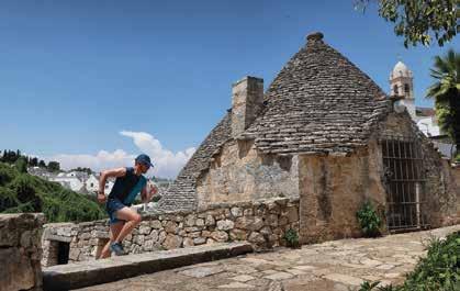 Sole che illumina e riscalda una regione di cui ho sentito tanto parlare, la Puglia, ma in cui non son mai stato e ora la voglio visitare correndo. Con me Simone, amico, compagno di viaggio e runner per diletto. I l nostro itinerario è semplice, si atterra a Bari, si noleggia una macchina e si toccano quelle che il passaparola considera tra le zone più belle della regione. Prima tappa a Ostuni, detta anche “città bianca” per via del suo caratteristico centro storico che nei tempi passati era interamente dipinto con calce bianca. Di sera ci immergiamo nei vicoli che la caratterizzano e ci abbuffiamo della deliziosa burrata, un formaggio fresco di latte vacchino, esternamente simile alla mozzarella, ma all’interno molto più morbido e filamentoso. I l mattino seguente, chi vi scrive, esce a correre su stradine secondarie, che si diramano tra una miriade di ulivi contorti dal tempo; mentre Simone, pigramente sdraiato nel letto con telefono in mano, si occupa delle prenotazioni alberghiere dei prossimi giorni.