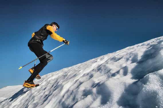 La corsa su neve ha nelle montagne la sua massima espressione e da parte loro le montagne offrono pendii di tutti generi e pendenze. Là dove le pendenze incominciano a essere importanti, un po’ come nei vertical estivi, l’uso del bastoncino diventa quasi obbligatorio. Con un buon bastoncino ci si appoggia, si spinge e si mantiene l’equilibrio du -