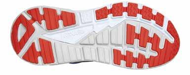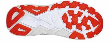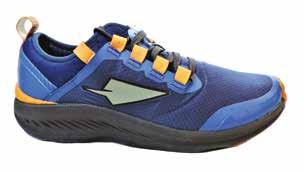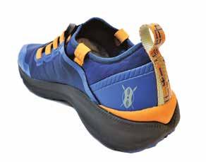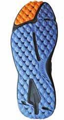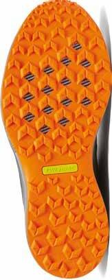 è water resistant, mentre la parte posteriore è ad asciugatura rapida e auto-drenante. L’intersuola in EVA è realizzata con specifiche elaborate dal centro ricerca Enda con un profilo basso, ha infatti un drop di 4 mm ed è integrata da una sottile ma resistente lamina di nailon a tutta lunghezza per la protezione del piede dagli agenti esterni presenti sul terreno. Nella zona del tallone c’è un secondo strato di intersuola a densità differenziata per migliorare stabilità e ammortizzazione. La suola è in gomma solida ad alta resistenza e trazione, e d è a tutto contatto con il terreno e ha la particolarità di avere degli incavi di flessione appena davanti ai metatarsi che generano due aree di dimensioni differenti, una più piccola posizionata sotto l’alluce e l’altra maggiore per le restanti quattro dita.