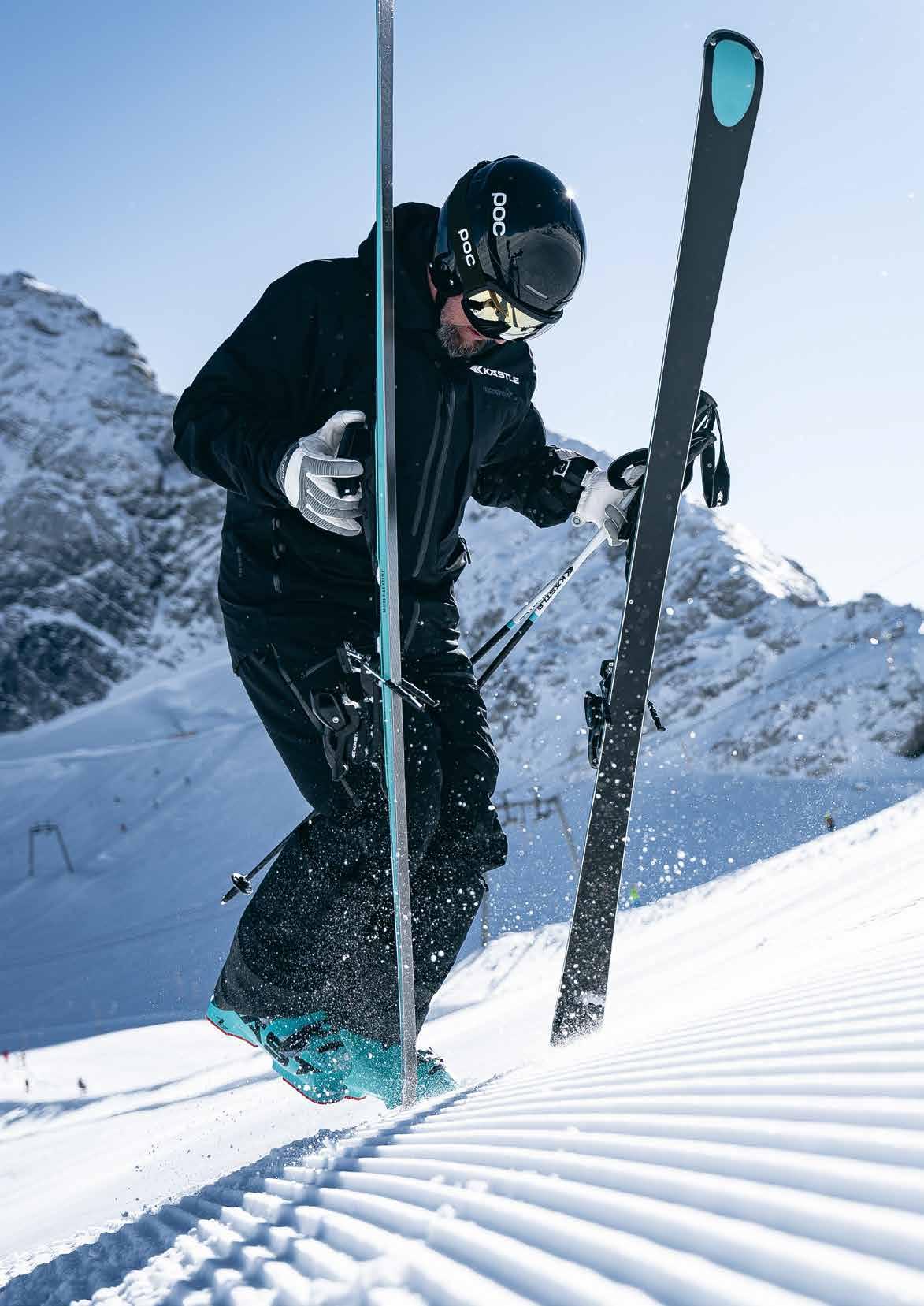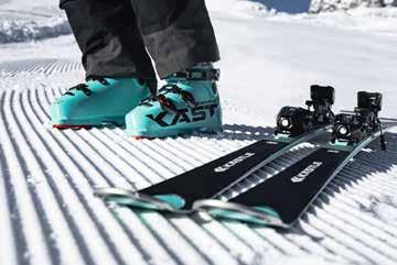In questo nuovo modello, la distanza tra i componenti è stata ridotta fino al punto di chiusura dei perni; una modifica geometrica in grado di assicurare che questi ultimi scattino negli inserti tecnici dello scarpone con uno sforzo significativamente minore. Il puntale è dotato di un inserto in gomma per un migliore e più intuitivo posizionamento dello scarpone in fase d'ingresso, in