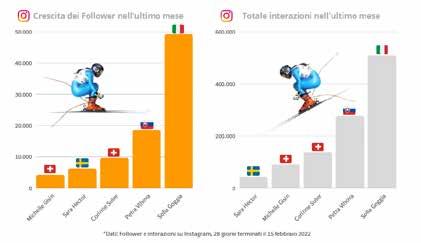 La sciatrice bergamasca supera di gran Lunga Le aLtre atLete sia nazionaLi che internaziona Li in termini di seguito e interazione. Lo stabi Lisce La ricerca di Xchanne L