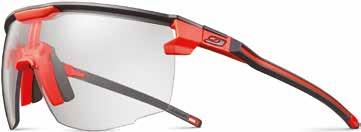 Un modello di occhiali pensato per corsa e trail running. Leggerissimi, del peso di soli 27 grammi, sono dotati di lente fotocromatica mono schermo per un ampio campo visivo senza ostacoli. Presentano delle nuove aste CustomFIT per una regolazione precisa, realizzate in un materiale che permette una tenuta ottimale. Il grip è garantito anche dal nasello in 3D e regolabile, che si adatta a tutti i tipi di naso e permette all’occhiale di restare in posizione durante l’attività. Il modello è realizzato con lenti fotocromatiche Reactiv Performance di categoria 1-3 e di categoria 0-3. Queste ultime sono ideate per l’utilizzo dalla mattina alla sera e in condizioni di scarsa luce. Ultimate può essere realizzato con lenti graduate, direttamente nei laboratori Julbo in Francia (RX Lab), previa prescrizione dell’ottico di fiducia, o con clip ottica (RX Clip).