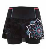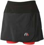 Lo skort interno è stato realizzato con la stessa tecnologia Skintech Seamless della maglia. In questo caso, però, la struttura body-mapping è dotata di un modulo elastico superiore a supporto dell’azione dei muscoli della gamba e dei glutei, alternato a zone alveolari con inserti ad alta ventilazione. Il gonnellino esterno, invece, è realizzato con tessuto leggerissimo, a elevata velocità di asciugatura e alta resistenza alle abrasioni. Questo assicura comfort assoluto e vestibilità perfetta (peso 60 gr/mq). Lungo la cintura l’accesso facilitato alle multi tasche.