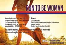 namento saranno insegnati gli esercizi per la respirazione, lo stretching , l’appoggio corretto del piede, l’andatura e il modo per eseguire le ripetute. Il tutto senza ansie da prestazione. Run to be Woman prende vita sotto la guida esperta di Chiara Nichetti, ex atleta mezzofondista professionista e istruttrice di fitness presso l’associazione meneghina.