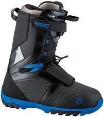montare in pochi secondi gli attacchi e che permette di cambiare le posizioni da regular a goofy senza dover ricorre all’uso del cacciavite. Gli scarponi Nitro si caratterizzano per la loro flessibilità, resistenza e facilità nell’indossarli. Dispongono di una piccola tasca trasparente dove è possibile inserire il barcode, sono dotati del sistema di allacciatura TLS, semplice e veloce per tutti e hanno i colori coordinati alle tre diverse taglie di attacchi.