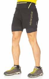 Lo short è invece ideale per corsa su strada e off road a doppio strato, dotato di un pantaloncino stretch interno in materiale traspirante e anti batterico e di uno esterno sempre stretch e oltre che resistente alle abrasioni. Studiato per vestire aderente e lasciare massima libertà di movimento, presenta anche dei taschini laterali richiudibili con zip, utili per riporre gel o chiavi. Fascione elasticizzato a 360°.