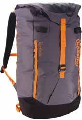 L’Eghen 22, che ricorda l’impresa di Riccardo Cassin sul Pizzo d’Eghen nelle Grigne, è uno zaino da alpinismo da portare in parete. Comodo, robusto e funzionale, è caratterizzato da una forma stretta e allungata che garantisce il massimo comfort durante la scalata non andando a interferire con l’imbracatura e il materiale. È il non plus ultra per le scalate in giornata all’insegna dello stile light & fast. È perfetto anche per le vie sportive multipitch e le cascate di ghiaccio. Tra i numerosi dettagli spicca il pannello in EVA dello schienale, che può essere facilmente sfilato dal suo vano per essere usato come appoggio (sedile) in caso di bivacco d’emergenza. Gli spallacci si distinguono per il loro design innovativo, con gli attacchi inferiori in posizione rialzata rispetto a tutti gli altri modelli. La tasca idrorepellente integrata nella parte superiore è dotata di interno trasparente e touchscre- en: basta quindi aprire lo zaino per avere immediato accesso alla relazione della salita o allo smartphone, senza il rischio di perdere o bagnare qualcosa. Il porta corda consente due modalità di utilizzo: corda alloggiata sotto la pattella di chiusura (se lo zaino non è completamente pieno) e corda alloggiata sopra la pattella (se lo zaino è pieno). In caso di necessità è possibile fissare ulteriore materiale all’esterno grazie alle due daisy chain laterali, collegabili tra loro con le 2 fettucce separate fornite di serie.