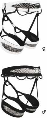 Imbracatura dal design grazioso appositamente progettata per adattarsi al corpo femminile. Dotata di cintura sagomata e anello di servizio più lungo, ha quattro anelli per attrezzi e tre fibbie Rock & Lock brevettate larghe 16 mm su cosciali che consentono di indossare l'imbragatura senza dover togliere gli sci o i ramponi. Disponibile anche nella taglia XS per fisici particolarmente esili.