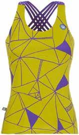 Noa, pratica e confortevole per la scalata e per la vita all'aria aperta, è una canotta in jersey bielastico con originali e colorate bretelline in lycra incrociate sul retro e con bra integrato ed estraibile. Stampa all-over sul davanti e ricamo lato cuore.